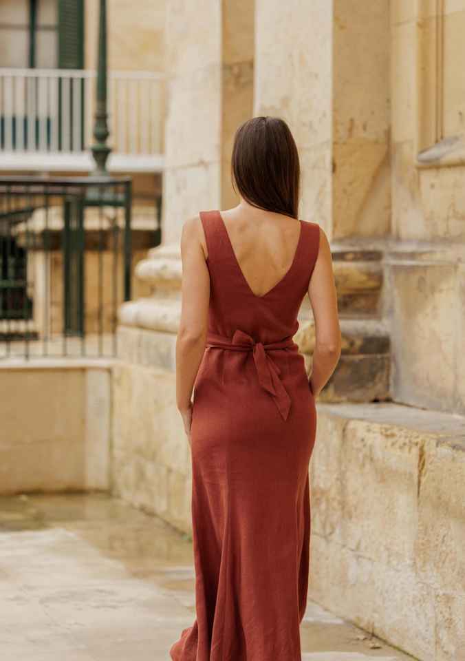 Stylish Bohemian V Neck Sleeveless Linen Maxi Dress for Women Fashionable Fitted Bodice Woven Hot Stock Available Big Sizes