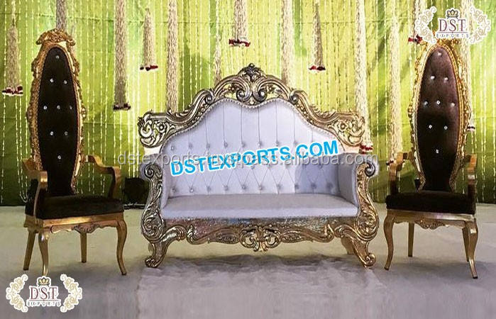 Stylish Bride Groom Chair With Wings Designer Golden Carved Wings Chairs Stylish Gold Pleated Wedding Wings Chairs