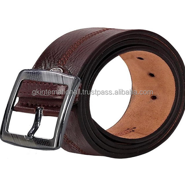 Stylish Brown Casual Branded Leather Belt for Men's Jeans High Quality Handmade Designer Leather Fashion Belt with Nickel Buckle