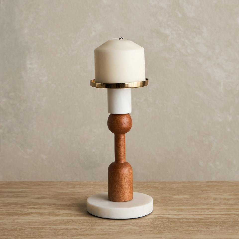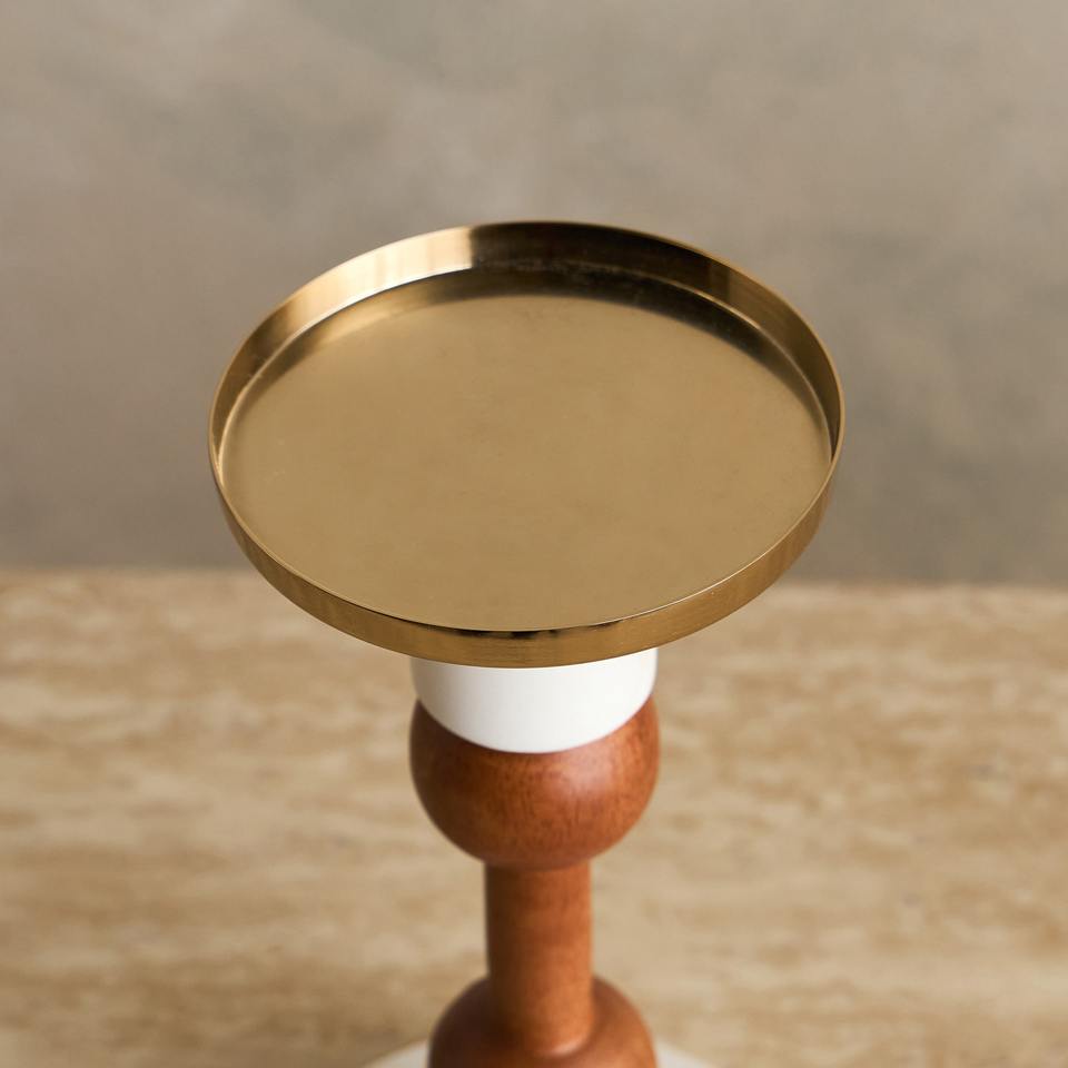 Stylish Candle Lamp Holder Wooden and Metal Pillar Tealight Stand Decorative Centerpiece for Living Room Bedroom
