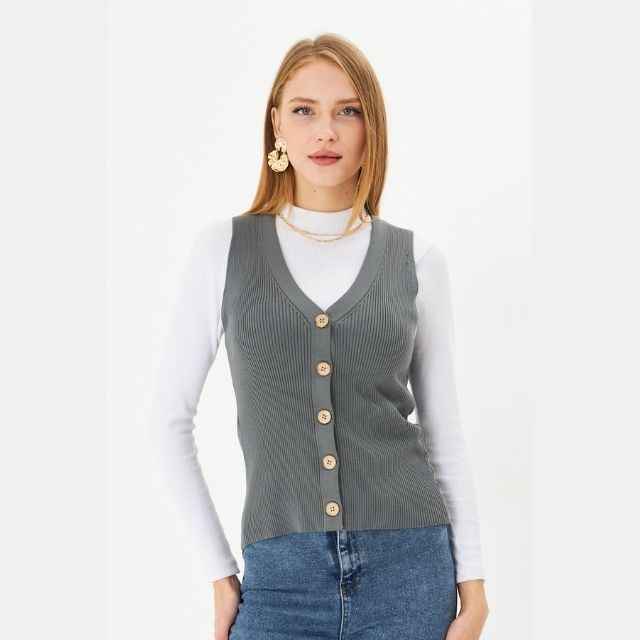 Stylish Casual Women's Corduroy Knitted Vest Winter Cotton Outer Wear with Button Decoration Waistcoat Length