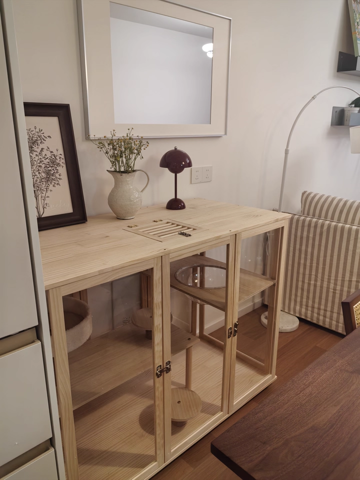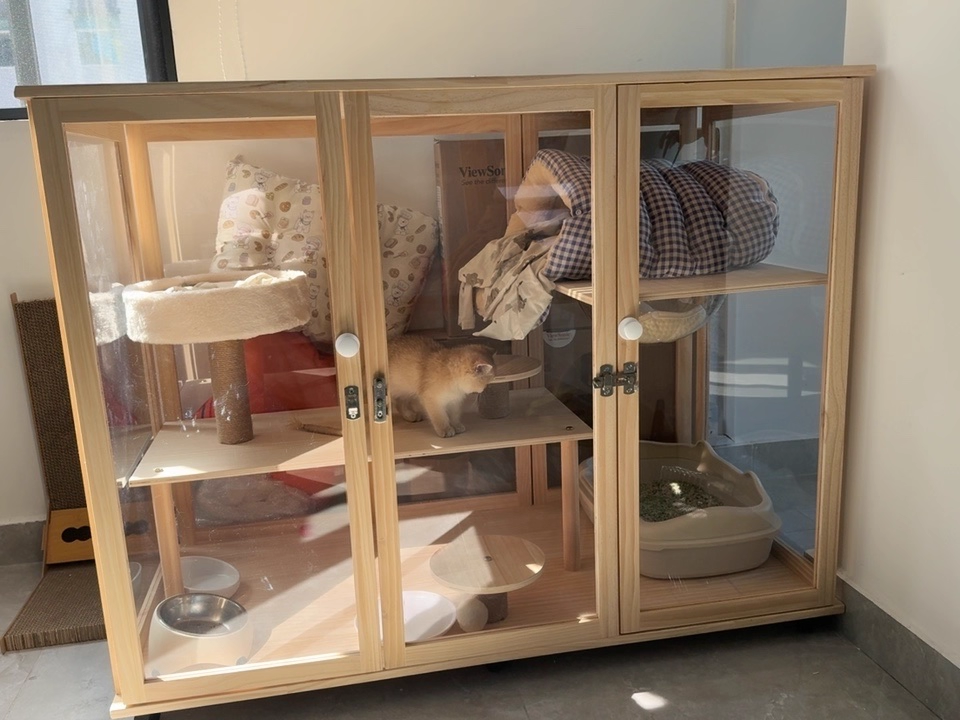 Stylish Cat House Furniture Pine Wood Cat Villa with Glass Doors for Home Decor Customized Cat Wooden house