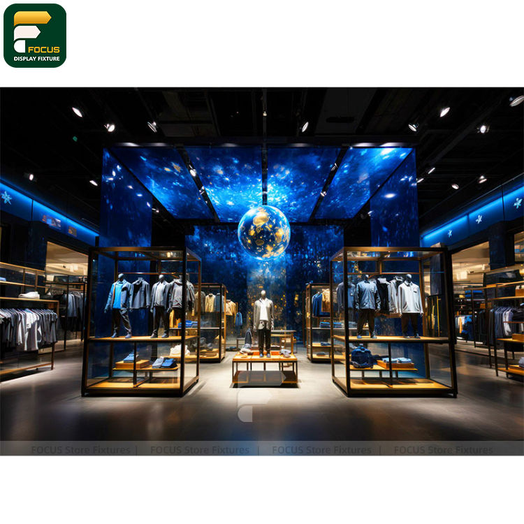 Stylish Clothing Shop Interior Display Rack Apparel Counter Garment Showcase Glass Cabinet Fixture
