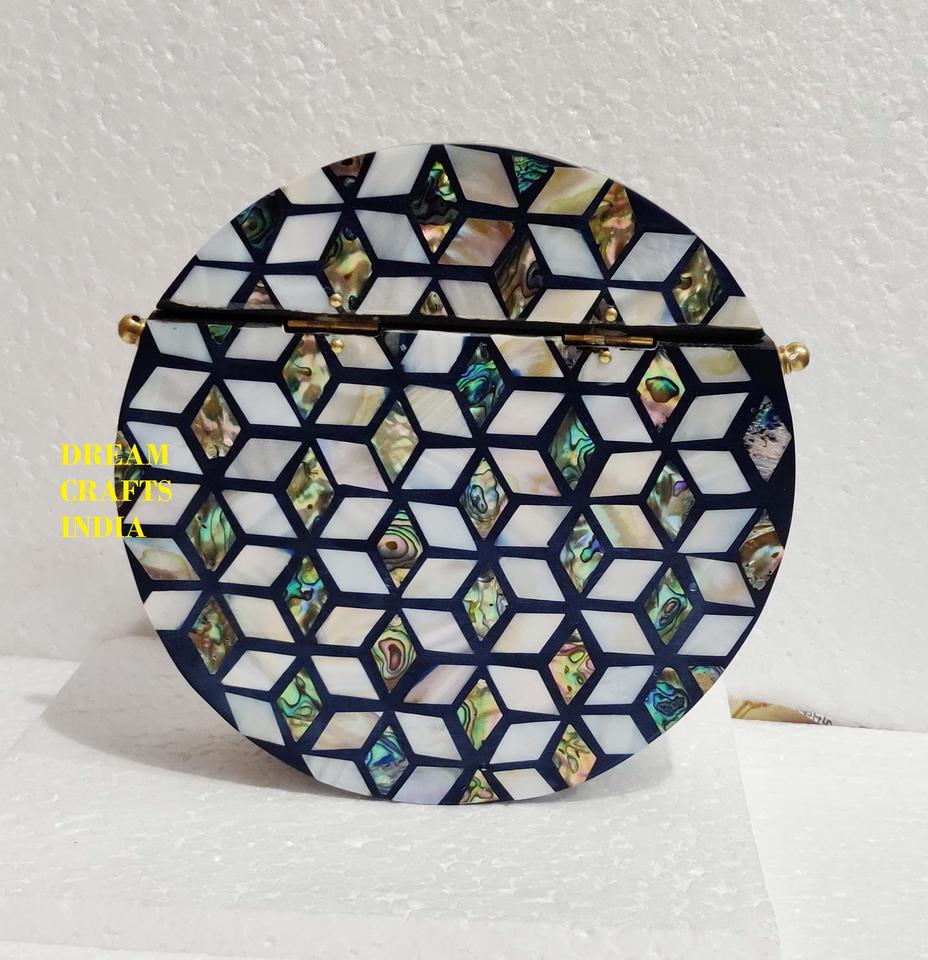 Stylish Clutch Bag Abalone Mother of Pearl Round Shape Handmade Luxury Design Box Clutches for Party Wedding Gift