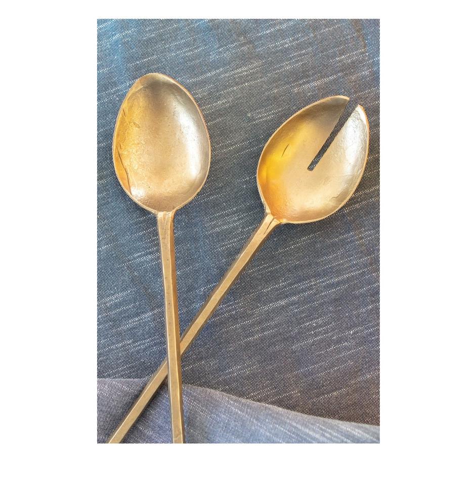 Stylish Contemporary Gold Metal Salad Server Pair With Decorative Handle Accent For Wedding Reception