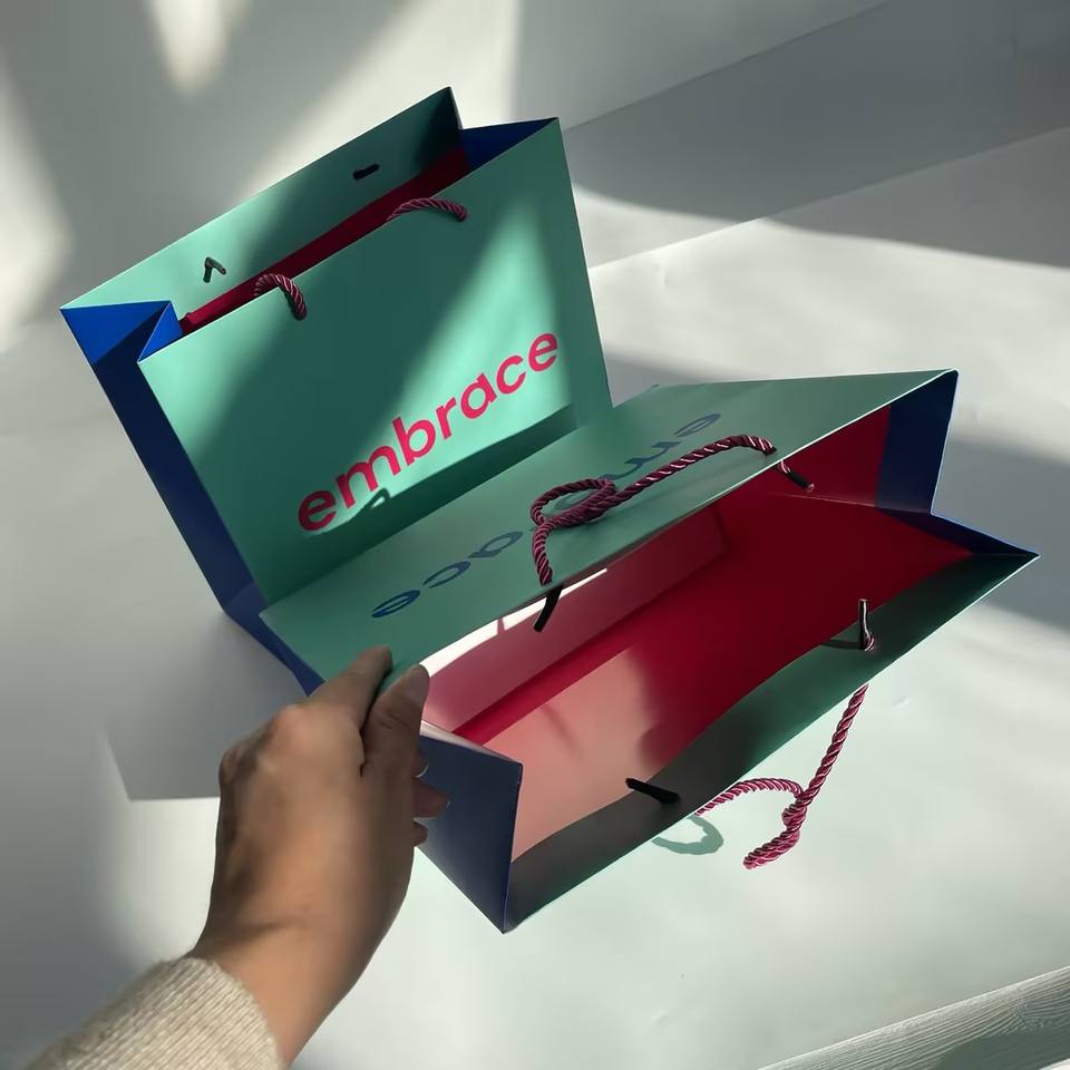 Stylish Contrast Color Paper Gift Bags Custom Printed Two-Tone Retail Bags with Twisted Handles for Shopping/Gifts