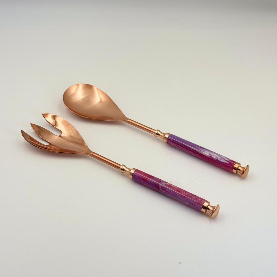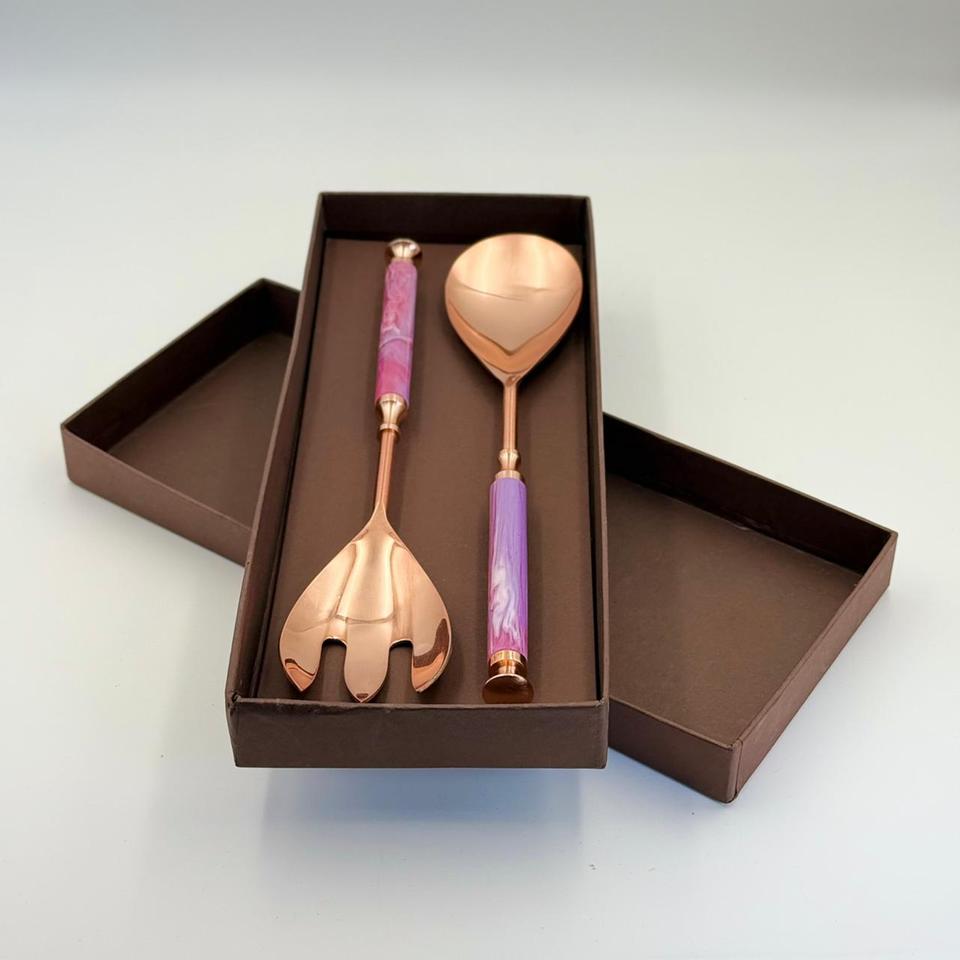 Stylish Copper Finish Stainless Steel Salad Spoon Fork Set Premium Quality Elegant Design Perfect for Luxury Dining Gifting Use