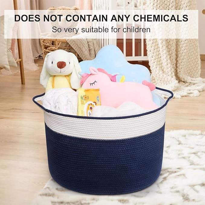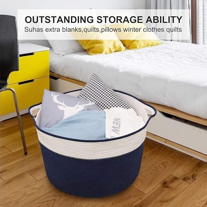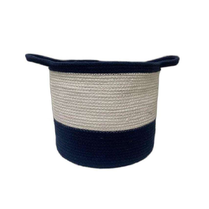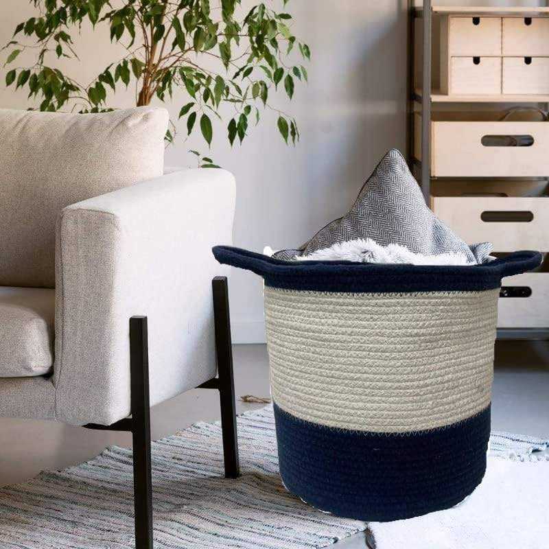 Stylish Cotton Rope Storage Basket with Handles Dual Tone Woven Organizer for Laundry Toys Home Storage