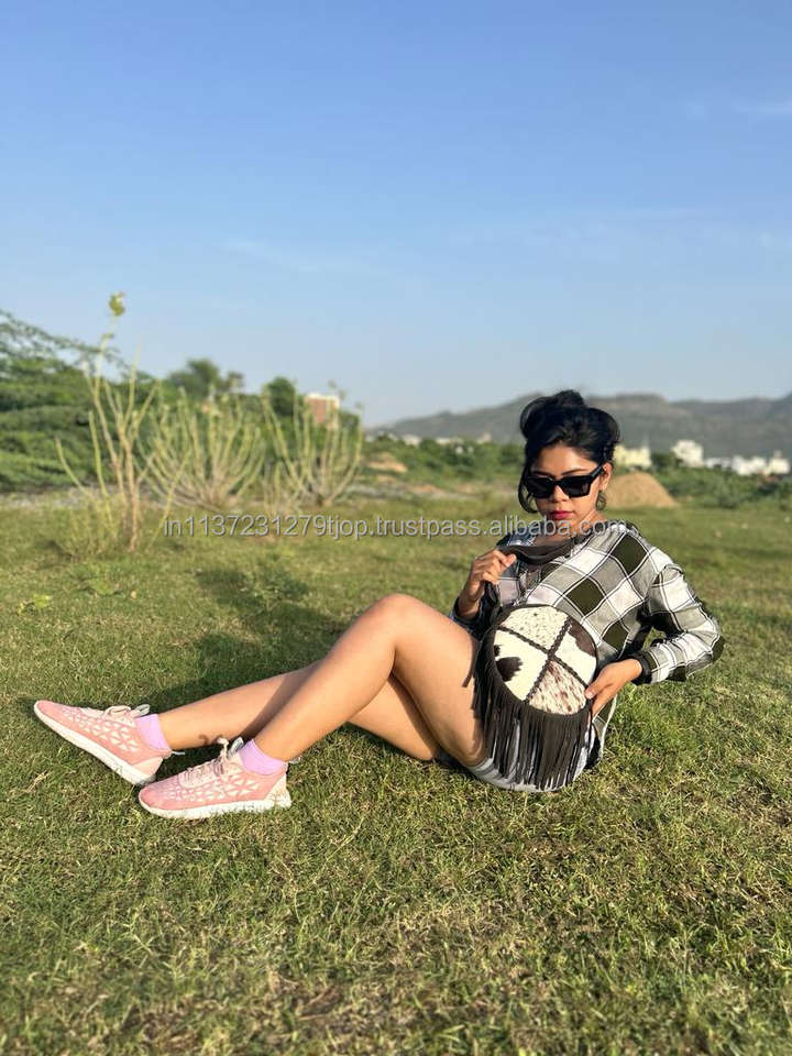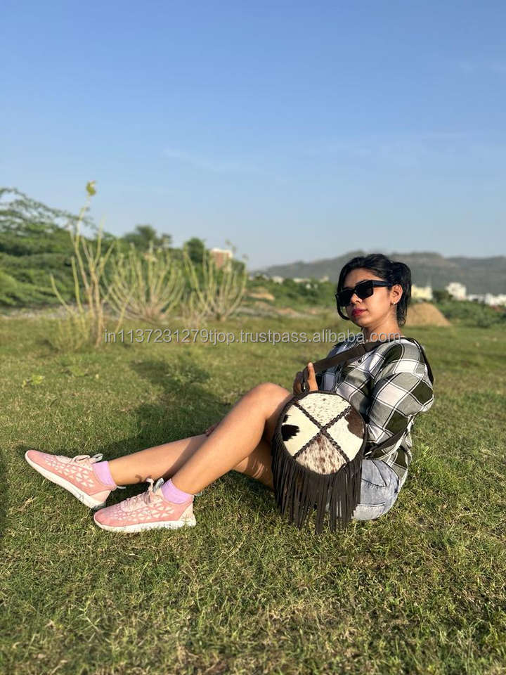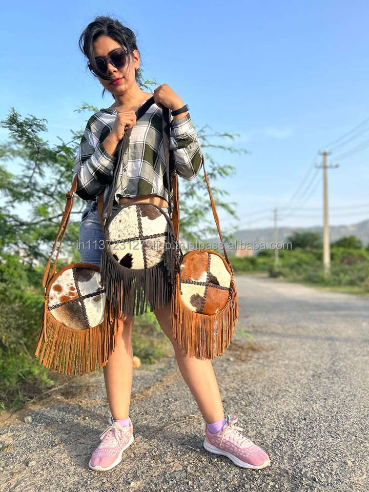 Stylish Cowhide Fur Sling Bag Handbag New Western Collection of Fringe Crossbody Shoulder Round Bags Women's Multi Uses Bag