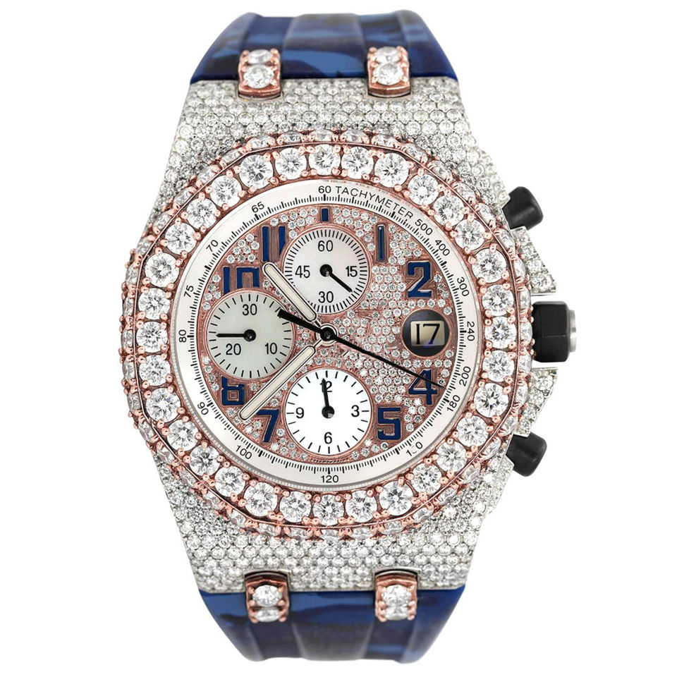 Stylish Customized Iced Hip Hop Lab Grown Diamond Watch for Men VVS Clarity Stainless Steel Jewelry Rubber Band Analog Glass