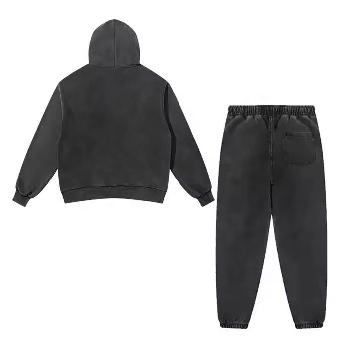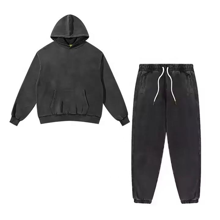 Stylish Customized Plain Sweatpants Hoodie Set Printed Embroidered Logo Sports Acid Wash Tracksuit