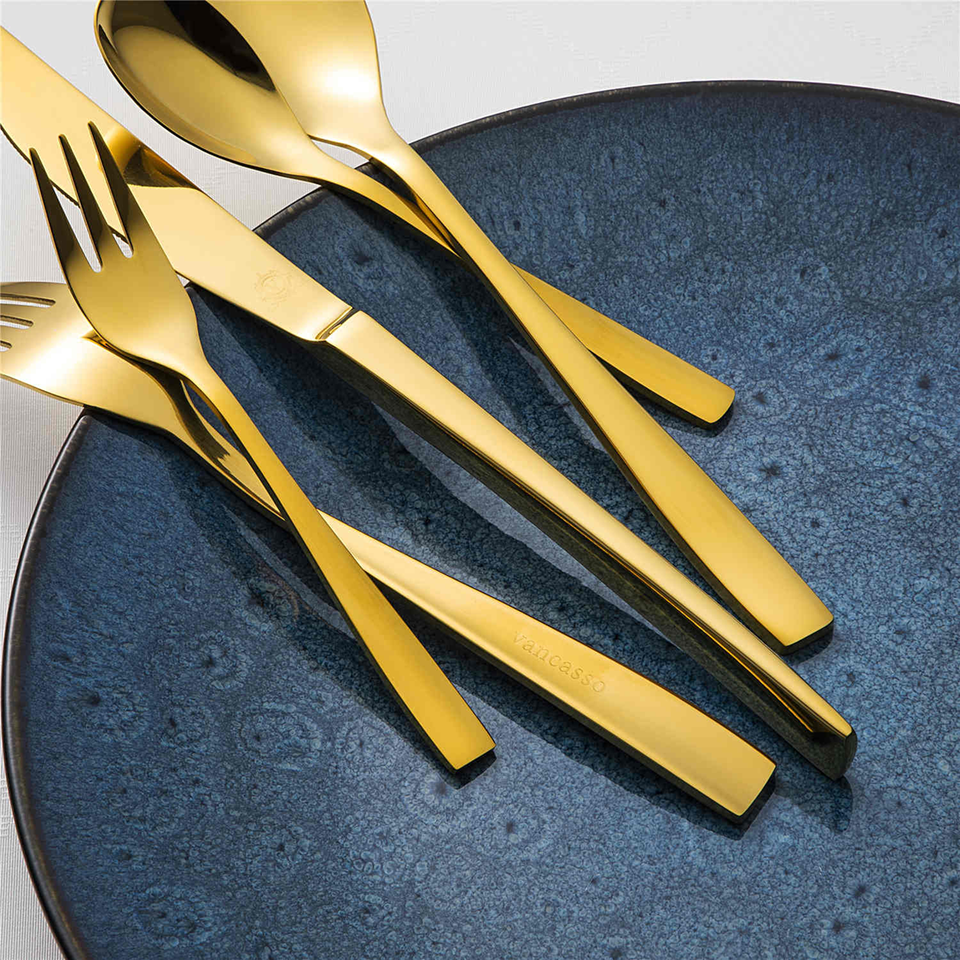 Stylish Cutlery Set for Home Hotel Restaurant Gold Color Mirrored steel Dinnerware Cutlery Sets Spoons Fork Knives Flatware