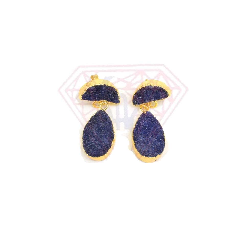 Stylish Druzy Gemstone Earring With Moon and Pear Shape Blue colour