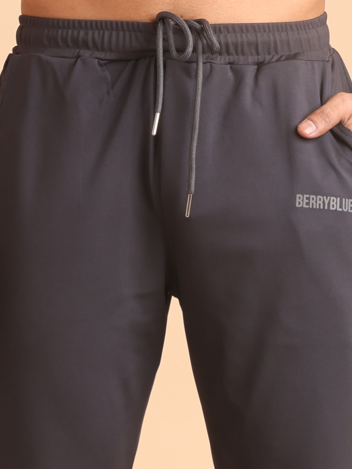 Stylish Dark Grey Dry-Fit Track Pants Comfortable Elastic Waist Nylon for All-Day Workouts Lounging or Casual Outings
