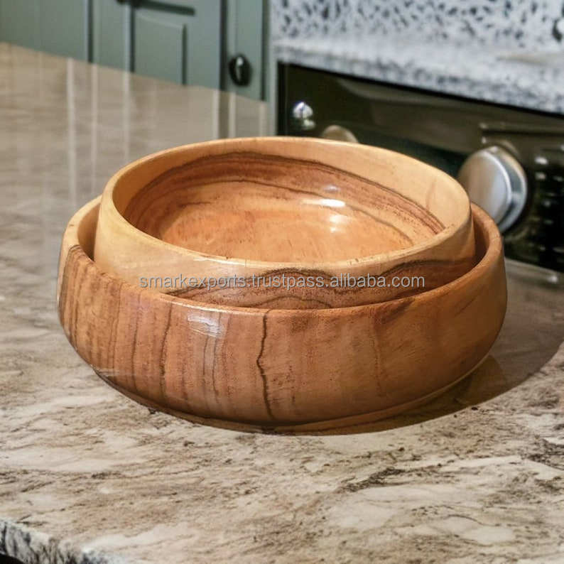 Stylish Eco-Friendly Acacia Wood Salad Bowl for Fruits Snacks Kitchen Decor Handcrafted Wedding Gift for Home Use