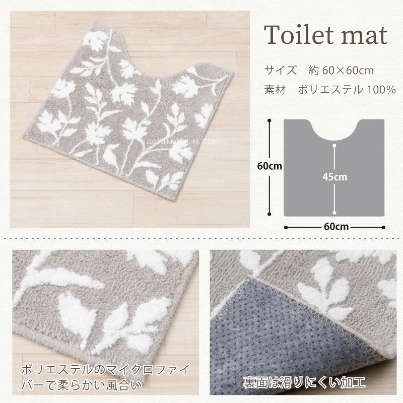 Stylish Elegant 4-Piece Gray Toilet Set with New Silhouette Plant Pattern Includes Bath Hardware Lid Cover Slippers Paper Holder