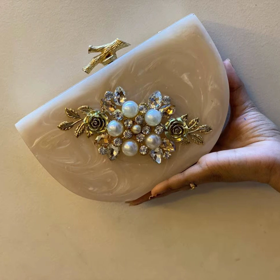 Stylish Embroidered Resin Designer Clutch Bag Finished Rhinestone Lady Vintage Purse For Wedding Partyware Anniversary Clutch
