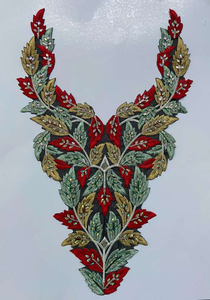 Stylish Embroidery Neck Collar Sparkling Sequin Work Patches Net Fabric for Fashionable Tailoring Blouse Gown Saree Neckline