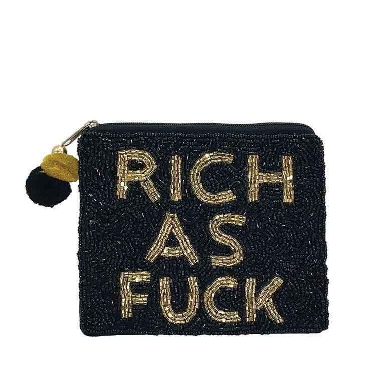 Stylish Embroidery Seed Beaded Case Coin Purse with Zipper Closure Customizable Size for Makeup & Cash Storage