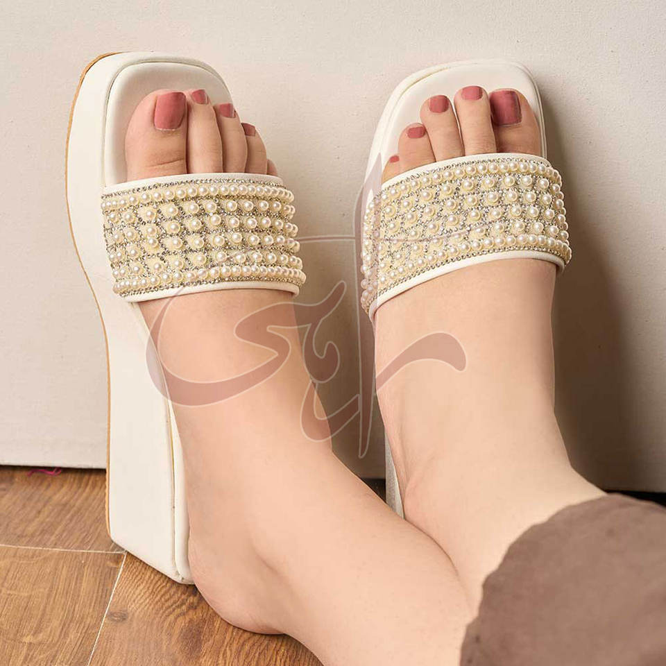 Stylish Anti-Slippery Faux Leather Upper Genuine Leather Outsole Slipper Heels for Festive Wear Bridal Events Everyday Elegance