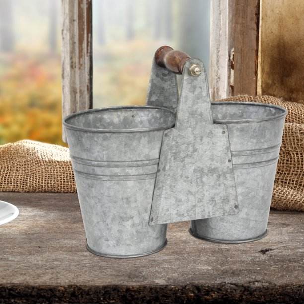 Stylish Galvanized Tool Caddy in Metal with Black Stand and Four Compartments Perfect for Home and Kitchen Storage Solutions