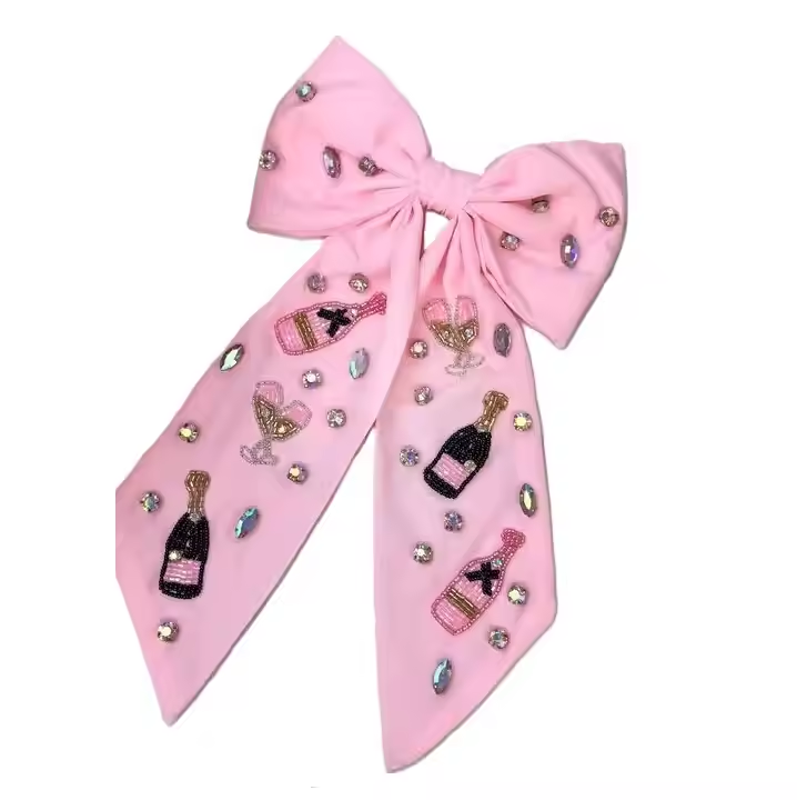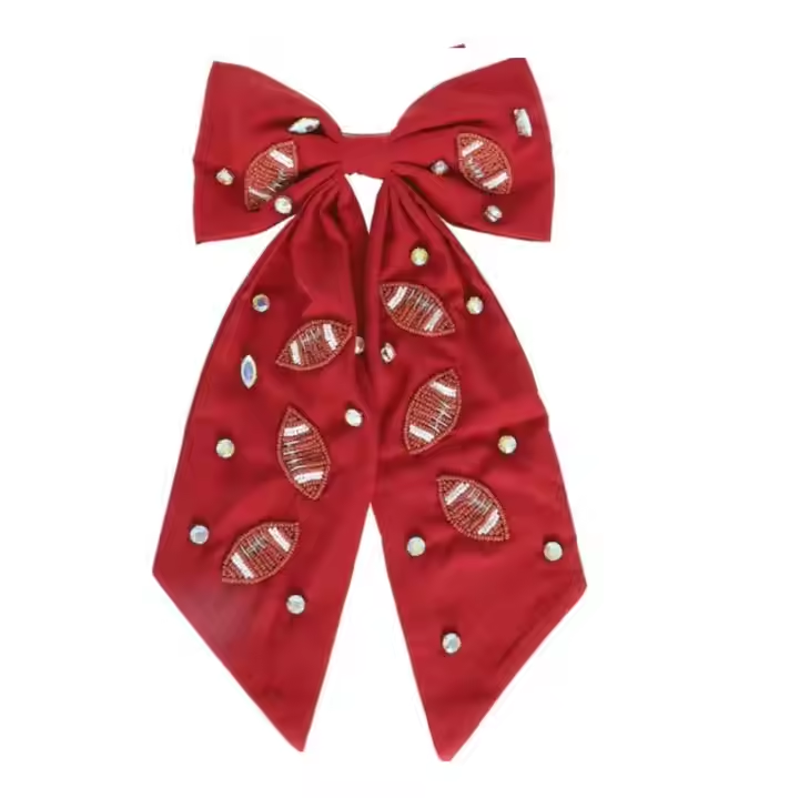Stylish Game Day Handcrafted Beaded Embroidery Hair Bows Set Elegant Seed Beads Bow Clips With Fine Hand Embroidery