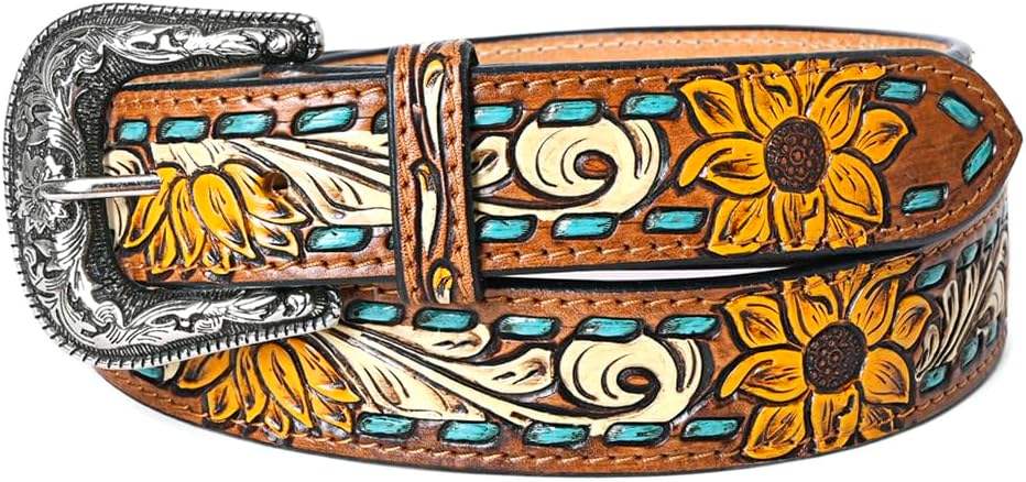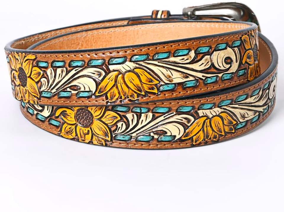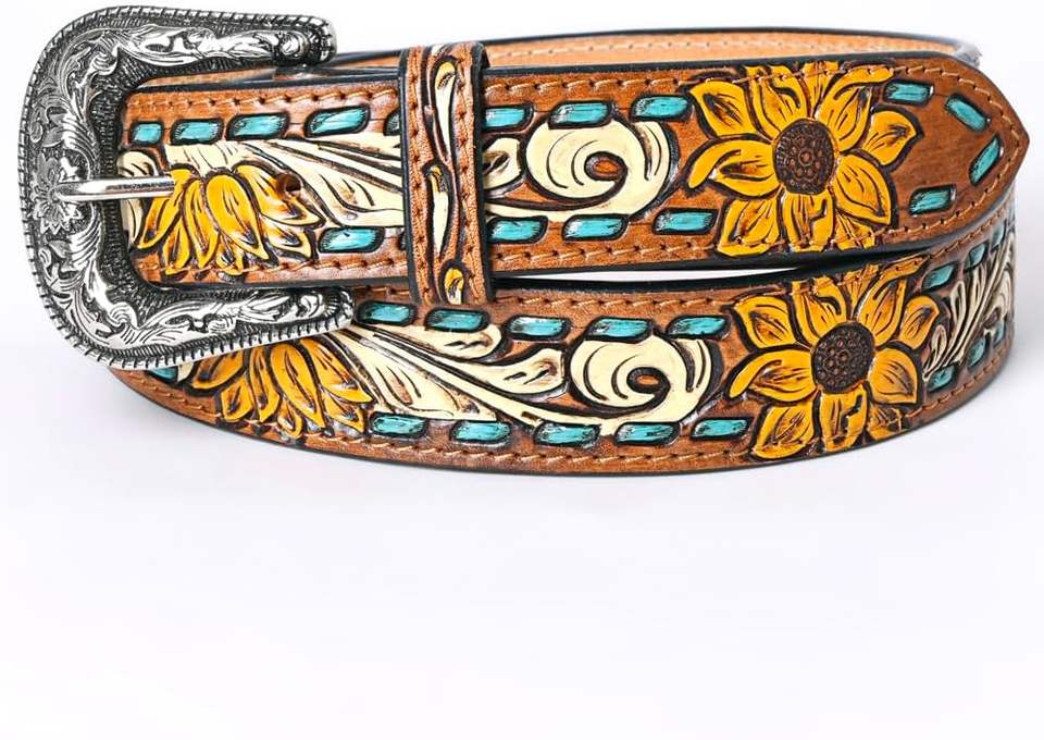 Stylish Genuine Leather Belts Western Brown Tooled Leather Floral Print Belts Real Handmade Tooled Leather Unisex Waist Belts