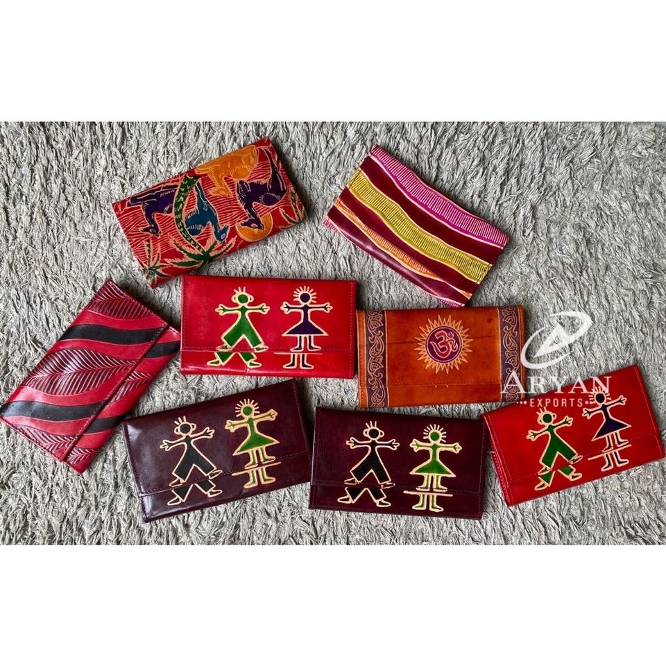 Stylish Genuine Leather Multi Color Printed Clutches Handmade Purse Girls Use