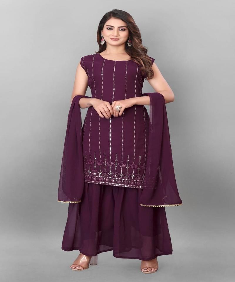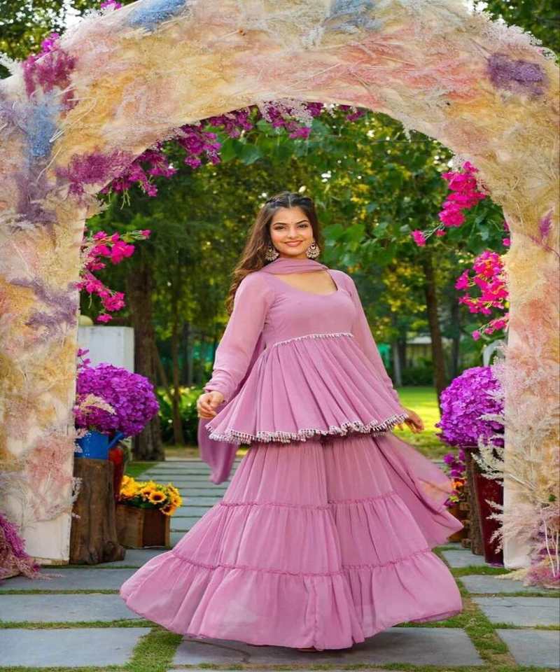 Stylish Georgette Sharara with Printed Top and Matching Dupatta Perfect Party Wear for Girls