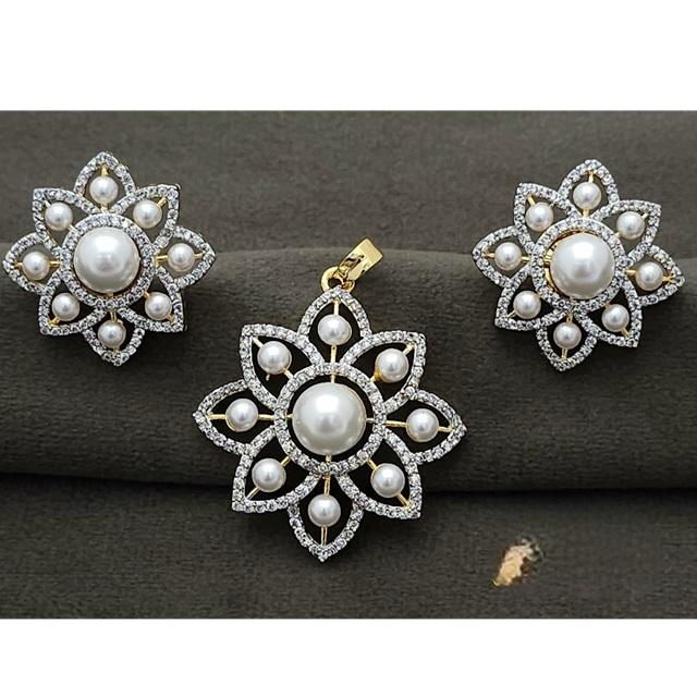 Stylish Gold White Designer Pendant Set Beaded In Pearl with Shimmering Zircon for Party Wedding Engagement Wear