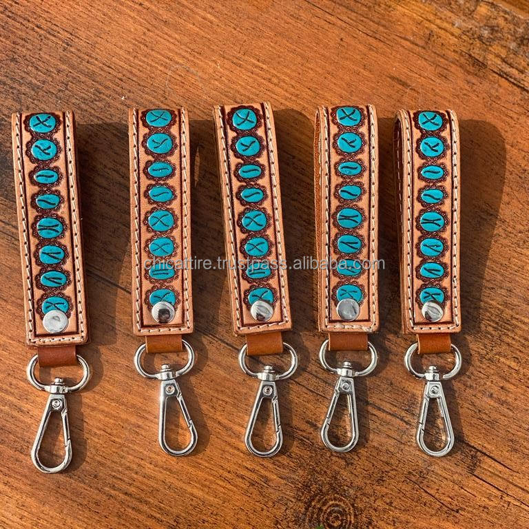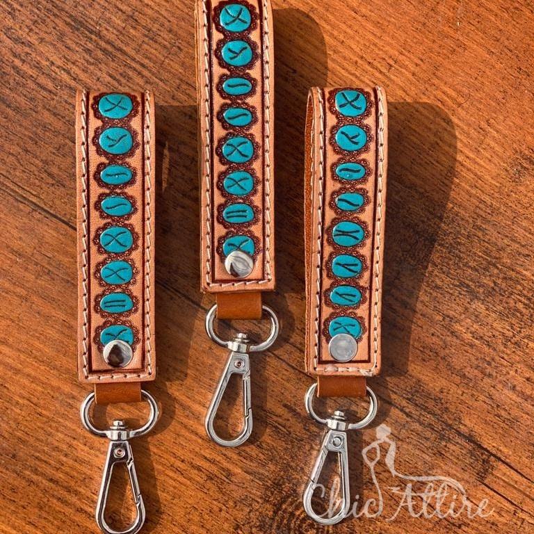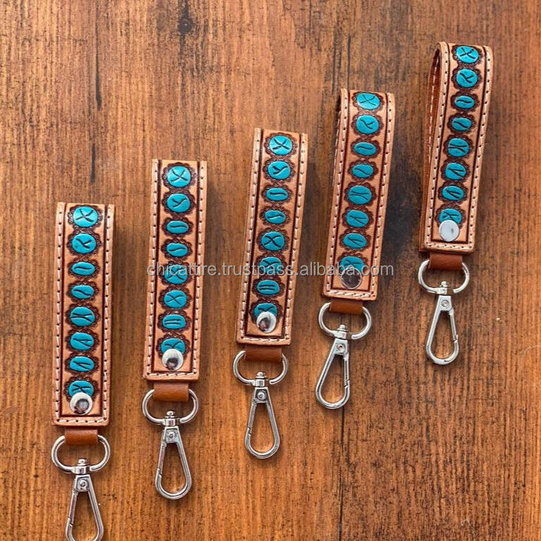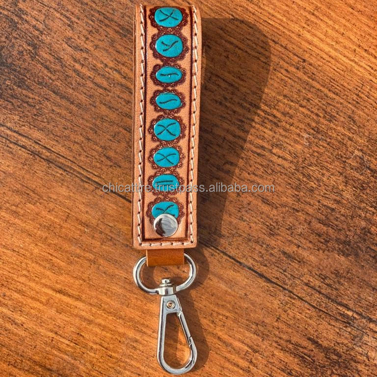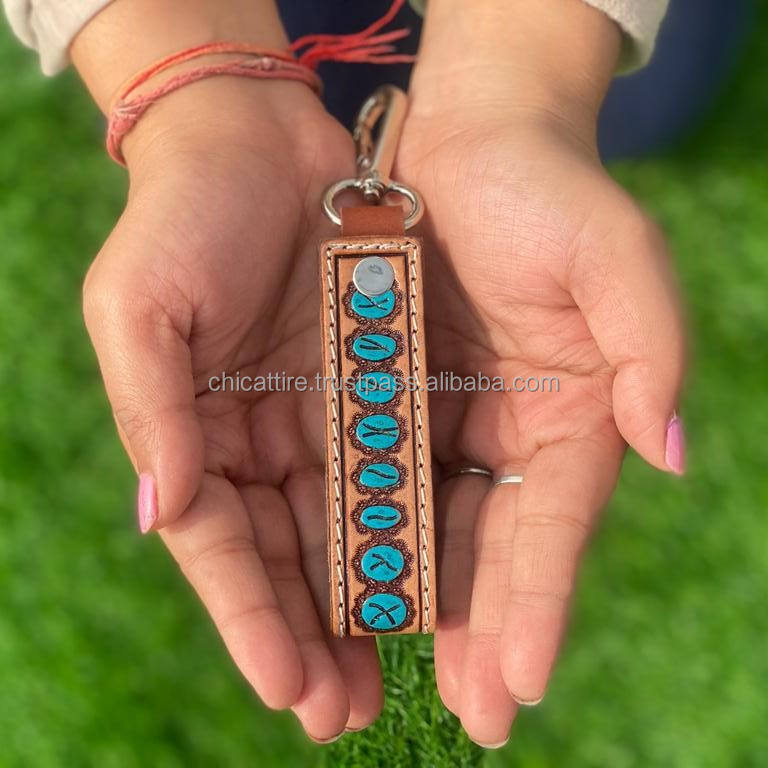 Stylish Hand Carved Tooled Leather Key Chains Embossed Floral Print Leather Key Rings Tooled Leather Accessories Cute Key Chains