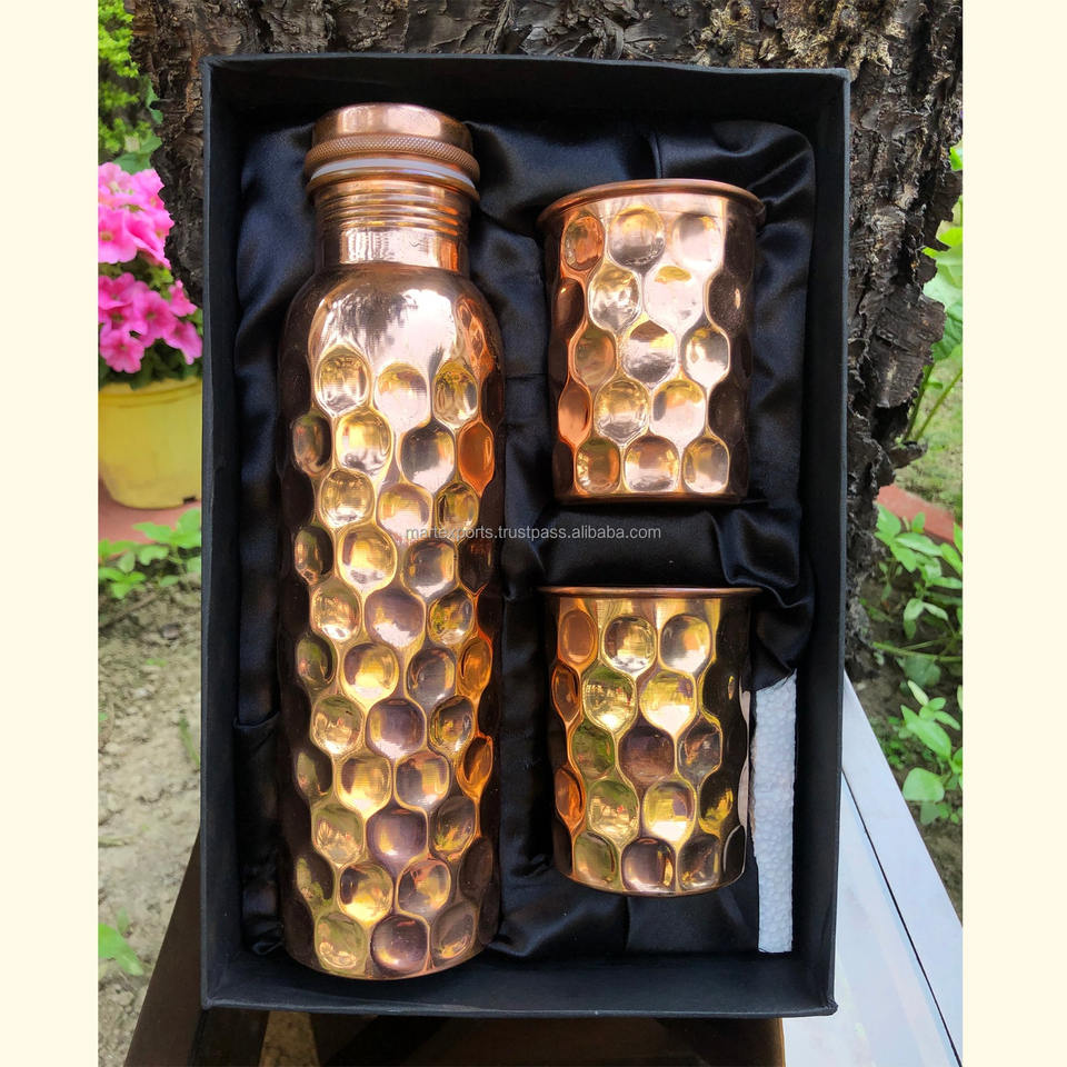 Stylish Handcrafted Copper Large Capacity Bottle Gift Box Set Eco Friendly Safe Unisex Ayurvedic Drinkware for Corporate Wedding