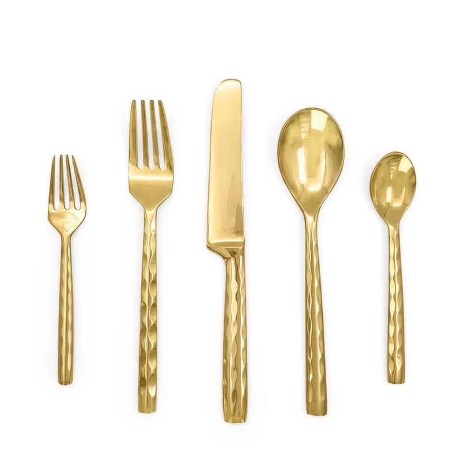 Stylish Handle Gold Color Plated Finished Stainless Steel Flatware Dishwasher Safe Cutlery For Hotel Cafe Use Set Of 5 Pcs