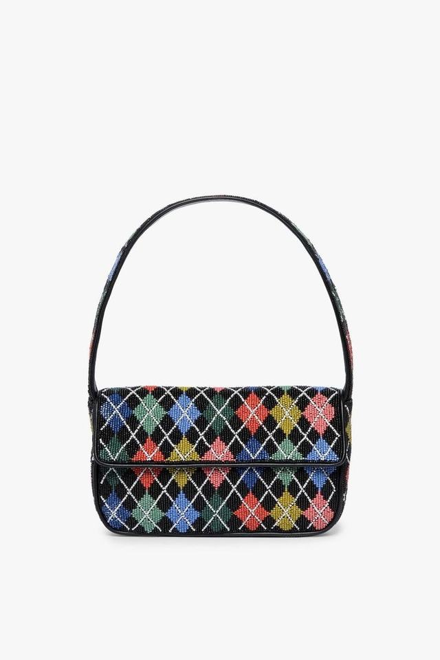 Stylish Handmade Geometric Multi-Color Beaded Shoulder Bag Premium Artisanal Flap Handbag Exquisite Pinkweave Evening Party Soft