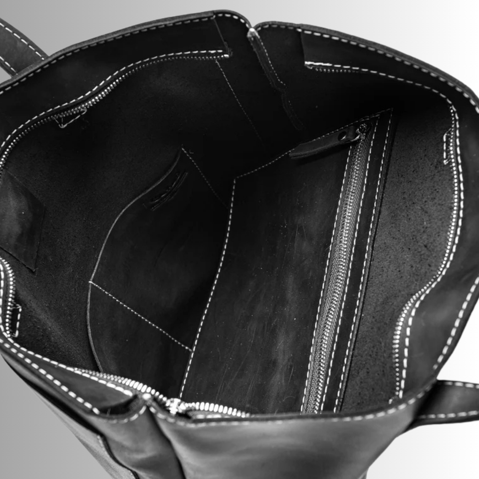 Stylish Handmade Leather Tote Genuine Black Leather Large & Durable Deal Shoulder Bag for Ladies Office & Travel