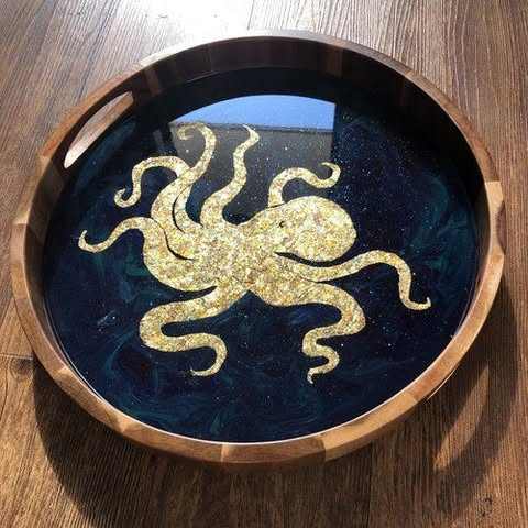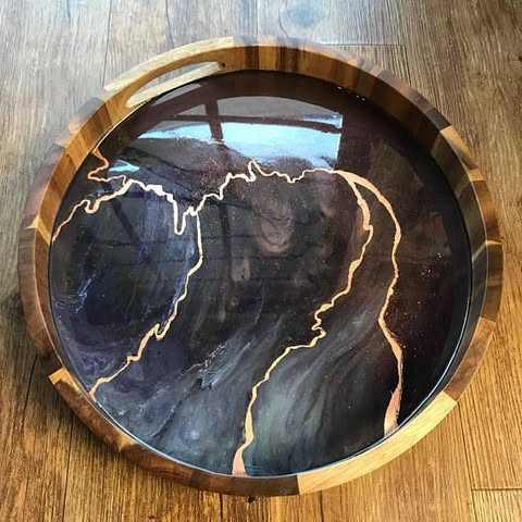 Stylish Handmade Luxury Epoxy Resin Wood Tray Artistic River Pattern Multi-functional Wedding Decorative Serving Board for
