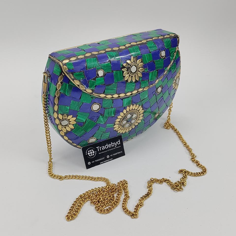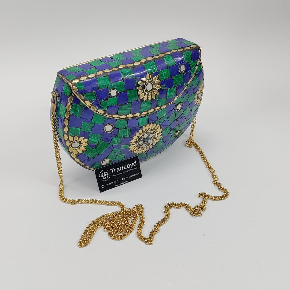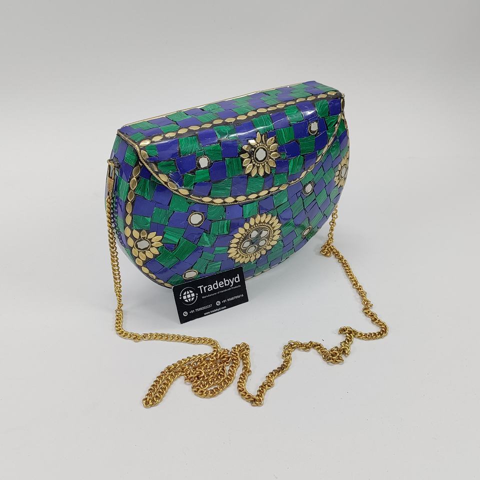 Stylish Handmade Metal Mosaic Clutch for Women Pearl Strap Evening Purse Ideal for Bridal and Special Occasions