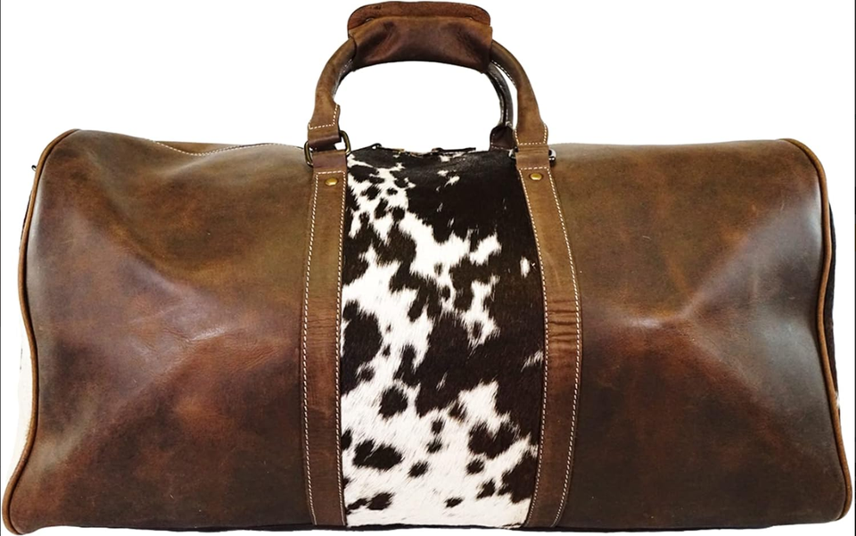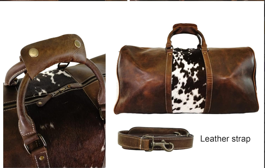 Stylish High Quality Luxury Hair-On Leather Weekender Bag Unique Genuine Cowhide in Black and White with Large Capacity