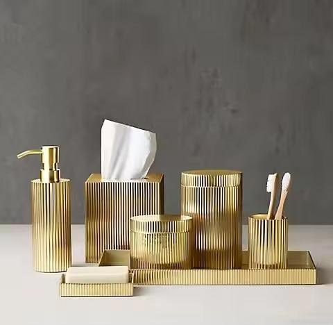 Stylish Home Metal Bathroom Accessories Set With Liquid Soap Bottle