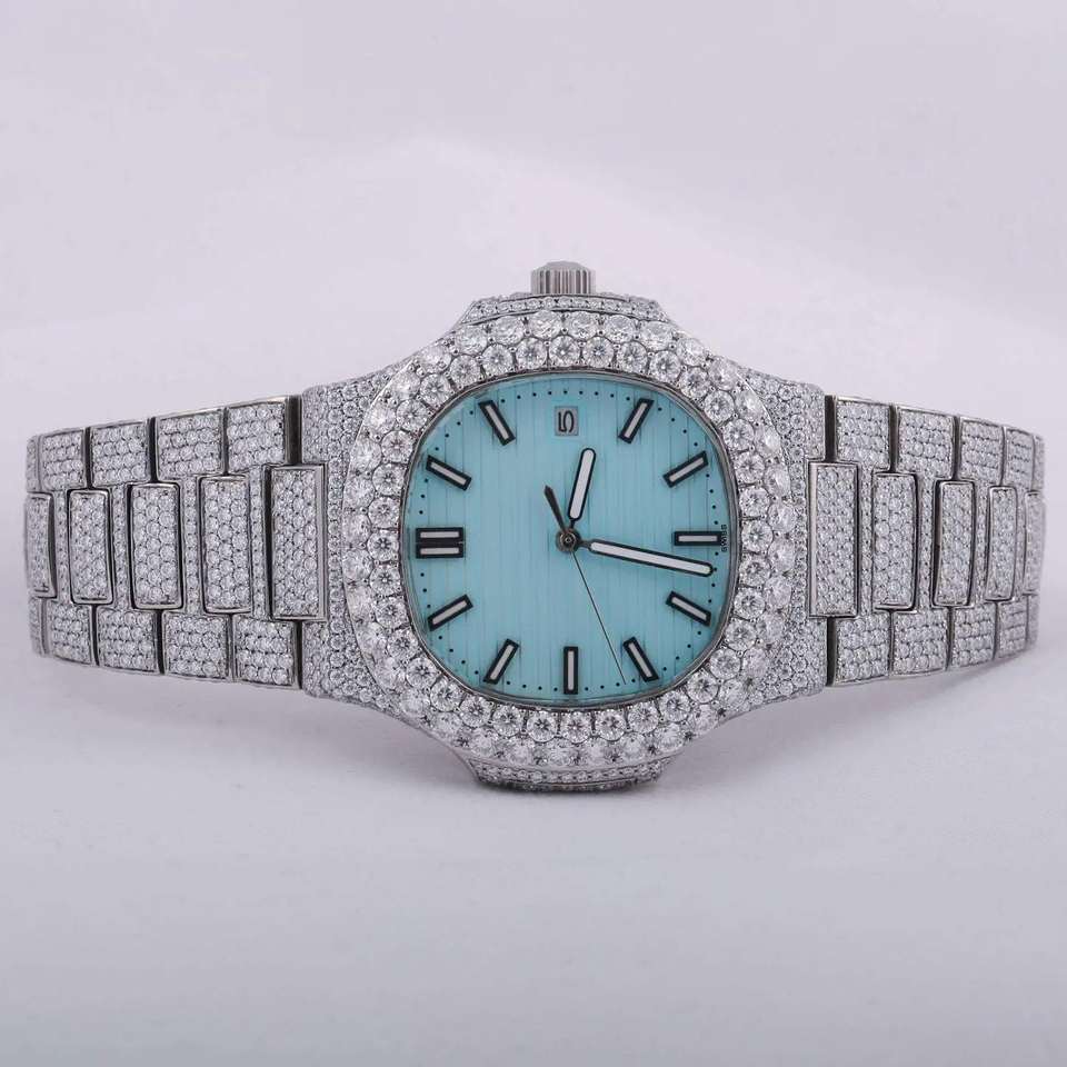 Stylish Iced Out Watch Moissanite Diamond VVS Stainless Steel Band Custom Logo Date Function Luxury Watch for Men and Women.