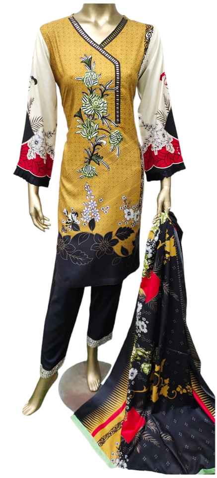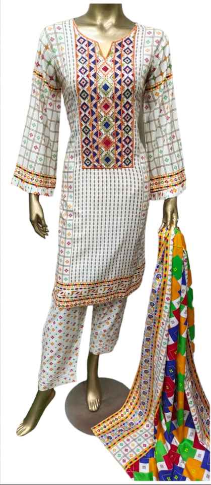 Stylish Ladies' Linen Modest Dress Straight Silhouette Ready-Made Embroidered Lenin Suits Button Decoration for Party