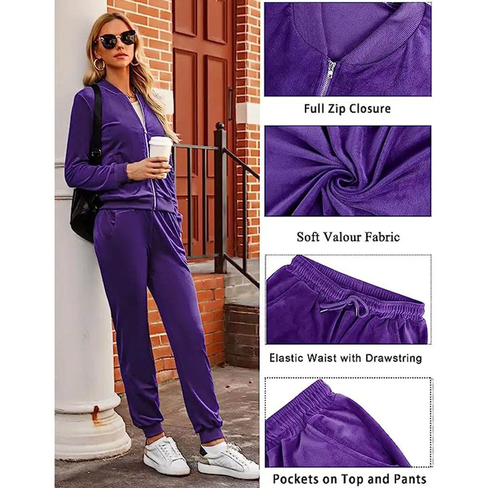 Stylish Ladies Plus Size Velour Tracksuit Soft Fabric Full Sleeve Pullover With Jogger Pants Cozy For Winter Lounge Travel Use