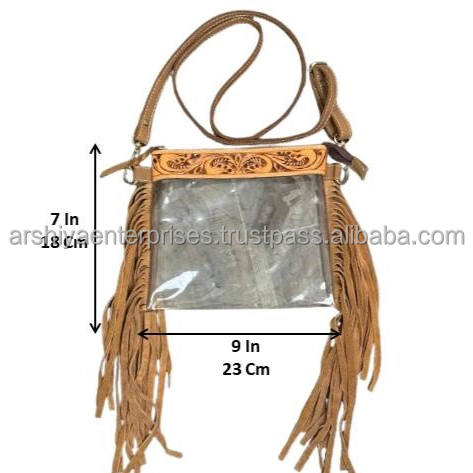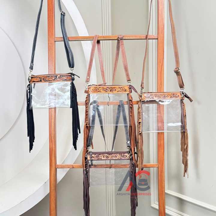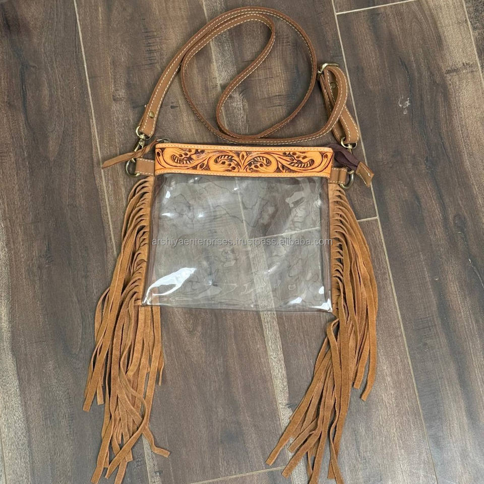 Manufacturer Customized Transparent Purse Stadium Approved Hand Tooled Leather Crossbody Shoulder Bag Small Clear Bags for Women