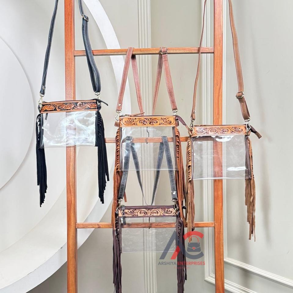 Handcrafted Clear Stadium Fringe Crossbody Bags