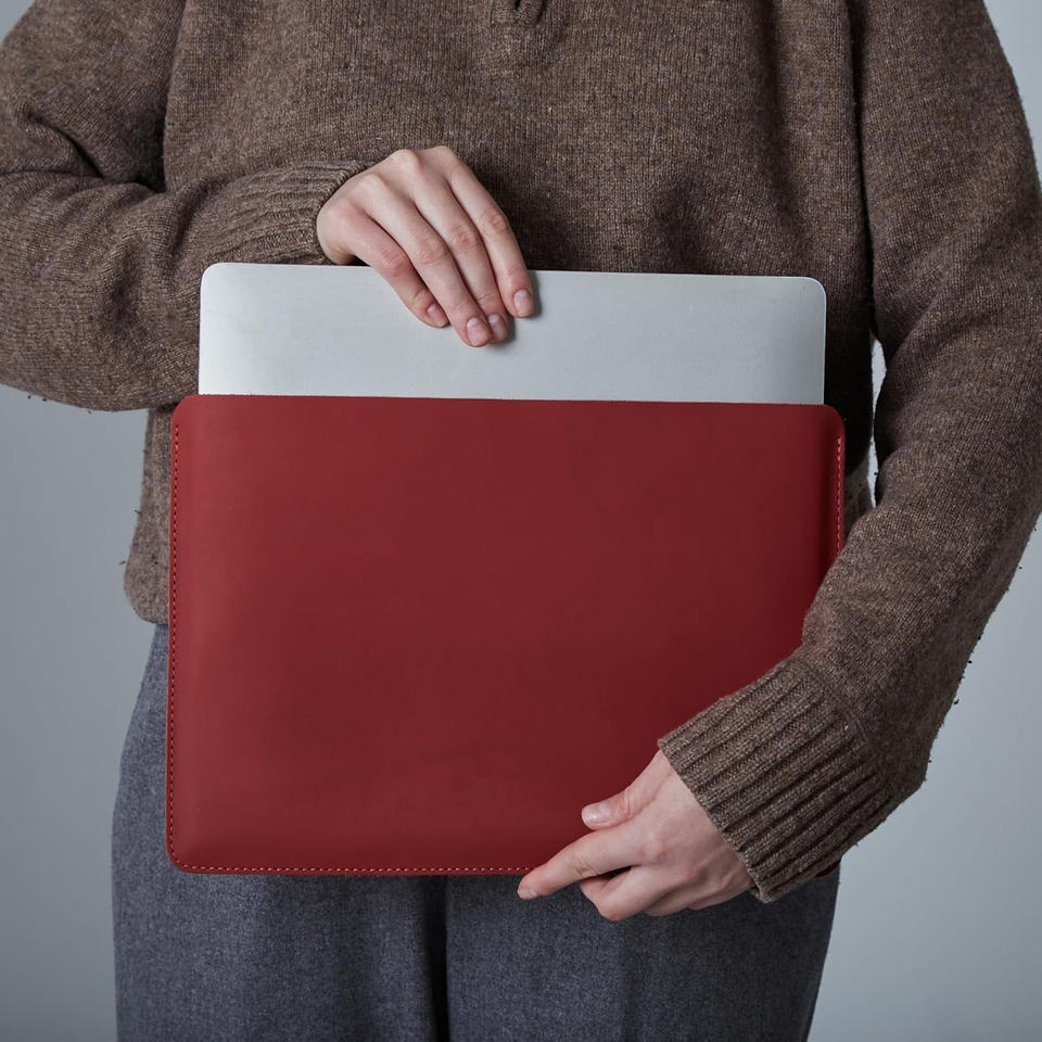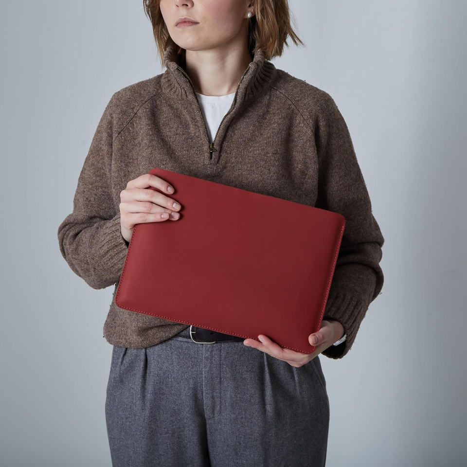 Stylish Laptop Bag Custom OEM Genuine Leather RED Soft Case Book Sleeve High Quality Cover For Men & Women Elegant Wholesale