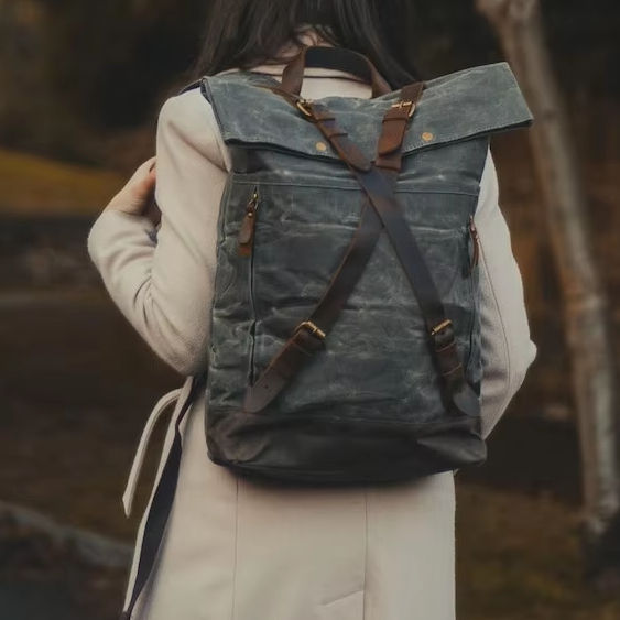 Stylish Leather Canvas Backpack Anti-Theft Eco-Friendly Laptop Compartment Unisex Travel School Work Hiking Outdoor Shoulder