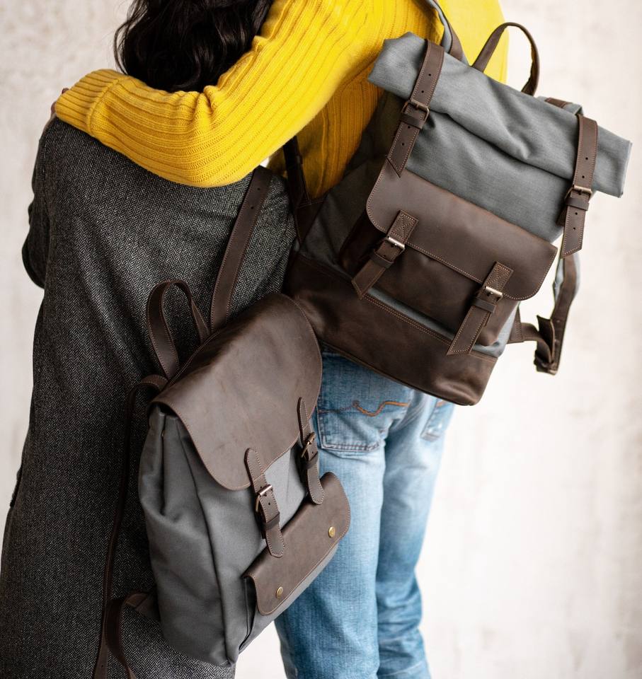 Stylish Soft Leather Canvas Backpack Outdoor Hiking Travel School Work Use Unisex Durable Lightweight Breathable Multi-Pocket