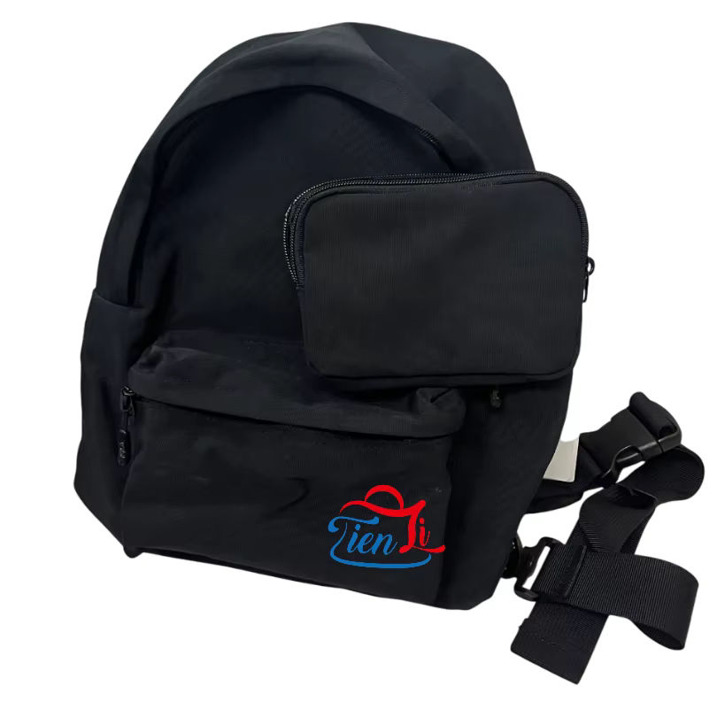 Stylish Lightweight Portable Daily Unisex Black Canvas Backpack with Mini Pouch