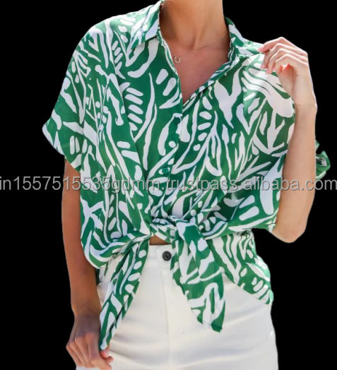 Stylish Lightweight Vacation Shirt Trendy Tropical Print Shirt for Women Fashionable Streetwear and Beachwear Blouse