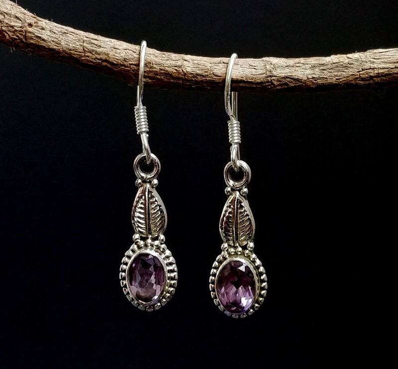 Stylish Long Gemstone 925 Sterling Silver Earrings Faceted Amethyst Dangle Drop Earrings